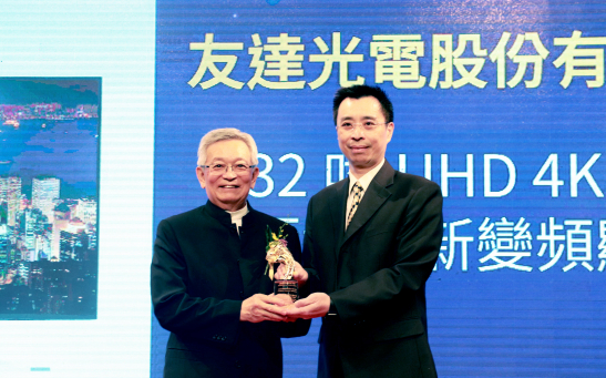 友達榮獲 2019 年中科優良廠商創新產品獎,由友達產品開發總部副總經理洪泓杰 (右) 代表領獎