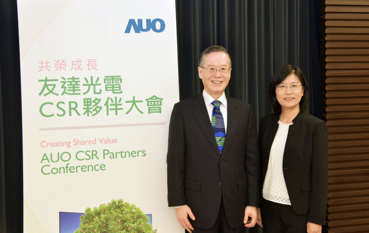友達舉辦 CSR 夥伴大會,邀請臺灣永續能源基金會董事長簡又新 (左) 及友達光電永續長古秀華 (右) 進行專題演講