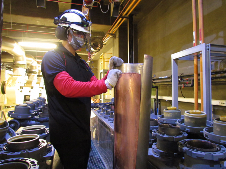 友達后里廠將將廢銅液淬鍊後再製成純度極高的銅管,讓廢棄物轉(zhuǎn)化成有效的工業(yè)或民生原物料 |